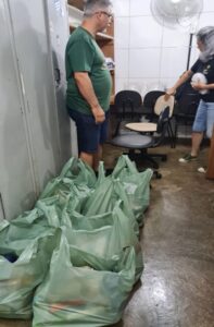 - Organização das verduras a serem distribuídas aos assistidos